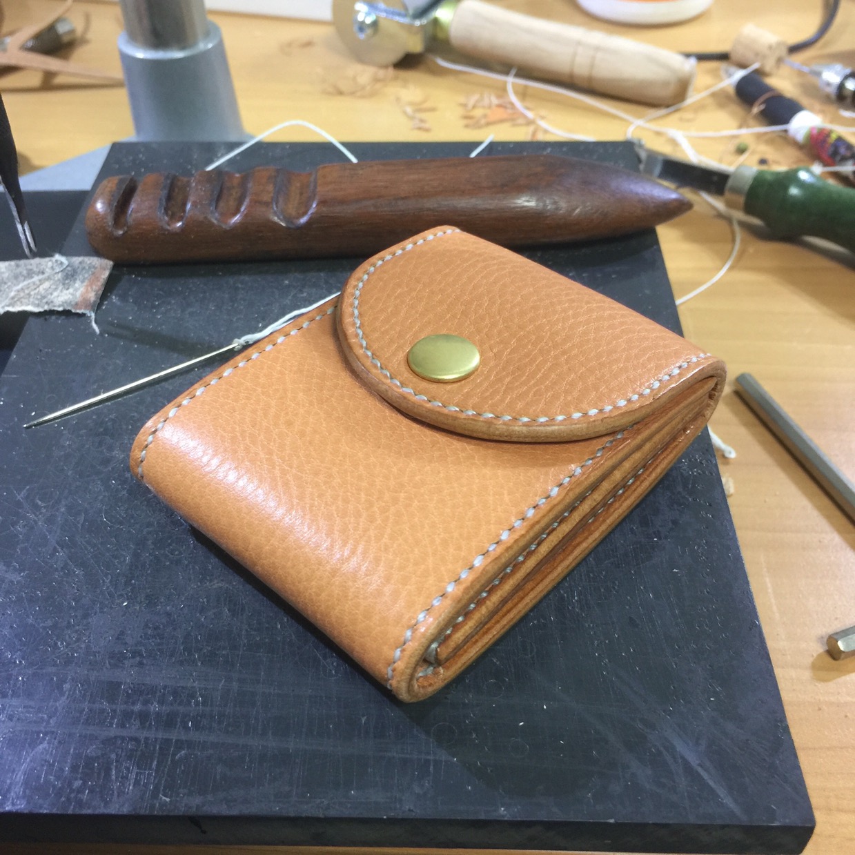 マチを付けることを考えると薄い革にしないとゴツくなる為、薄い革をチョイスしなければならない。
